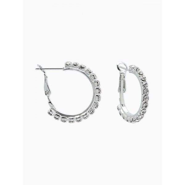 Серьги-кольца со стразами d=2.5 см, белые, цвет серебристый
