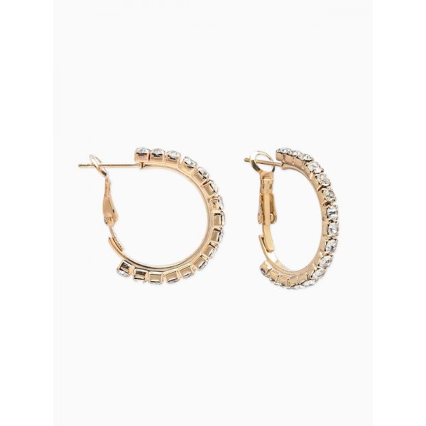Серьги-кольца со стразами d=2.5 см, белые, цвет золотистый