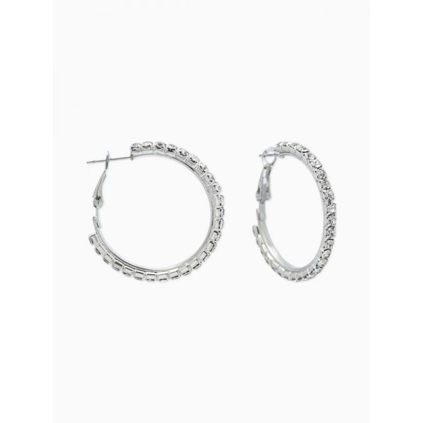 Серьги-кольца со стразами d=3.5 см, белые, цвет серебристый