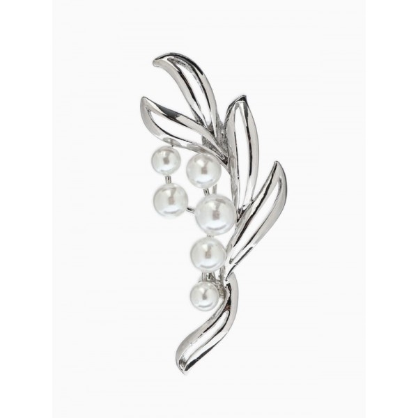 Брошь «Жемчужная ветвь», белая, цвет серебристый