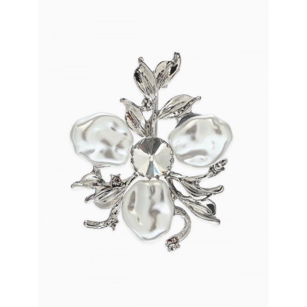 • Брошь «Цветочек роскошный жемчуг», белая, цвет серебристый