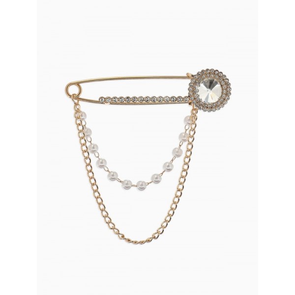 Булавка «Императрица. Цепочка и жемчуг», в стразах, L=7.5 см, белая, цвет золотистый
