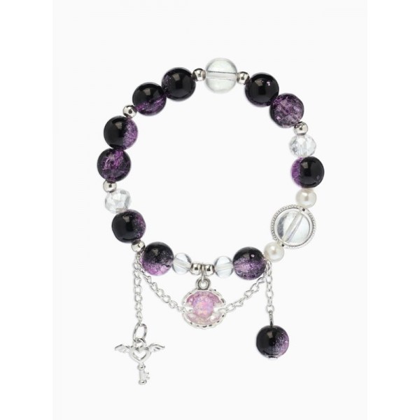 Браслет с Кулонми «Сахарный» перламутр, шар №10/8, d=6 см, чёрно-фиолетовый, цвет серебристый