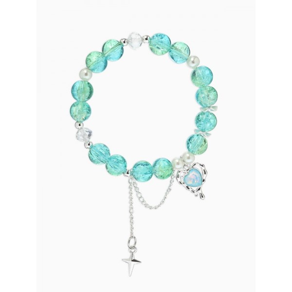 Браслет с Кулонми «Сахарный» сердце, искра. шар № 10/8, d=6 см, зелено-голубой, цвет серебристый