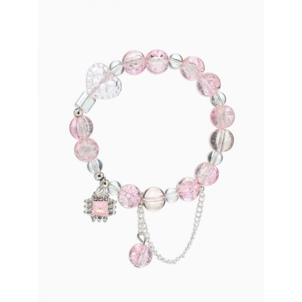 Браслет с Кулонми «Сахарный» ромб, сердечко, шар №10, d=6 см, бело-розовый, цвет серебристый