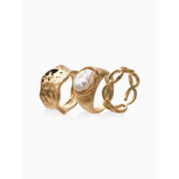 • Набор колец «Новый стиль. Жемчуг и Цепь», 3 шт. размер МИКС, белый, цвет золотистый