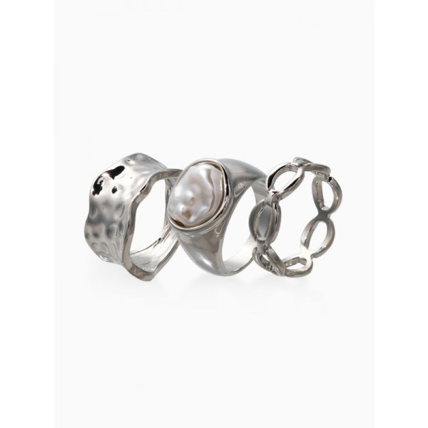 Набор колец «Новый стиль. Жемчуг и Цепь», 3 шт. размер МИКС, белый, цвет серебристый