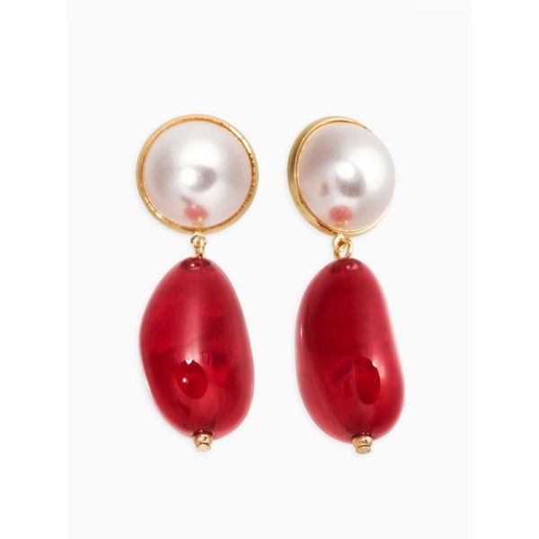 • Серьги акрил с жемчугом «Капля», бордово-белые, цвет золотистый
