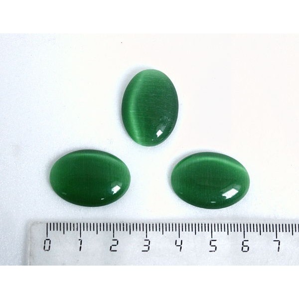 Кошачий глаз (синт.), кабошон овал 25х18мм, цвет зеленый травяной