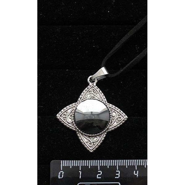 Кулон из гематита, круг 20мм, оправа "4 лепестка"..