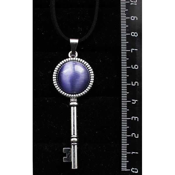 • Кулон из кошачьего глаза (синт.), цвет фиолетовый, "ключик", круг 20мм