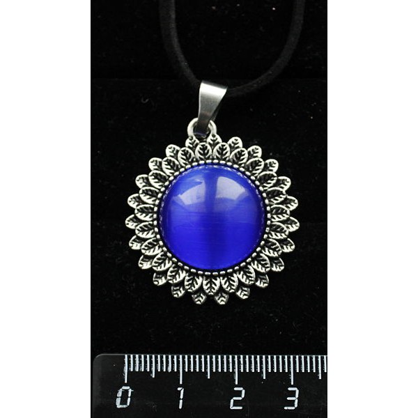Кулон из кошачьего глаза (синт.), цвет синий индиго, "подсолнух", круг 20мм
