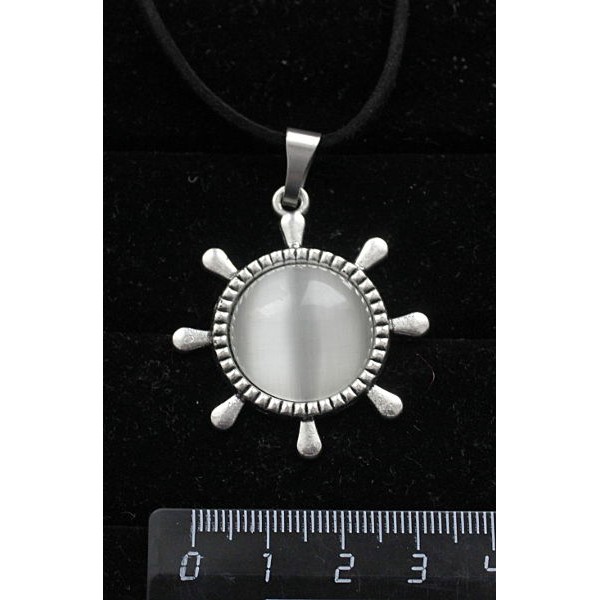 Кулон из кошачьего глаза (синт.), цвет белый, "штурвал", круг 20мм