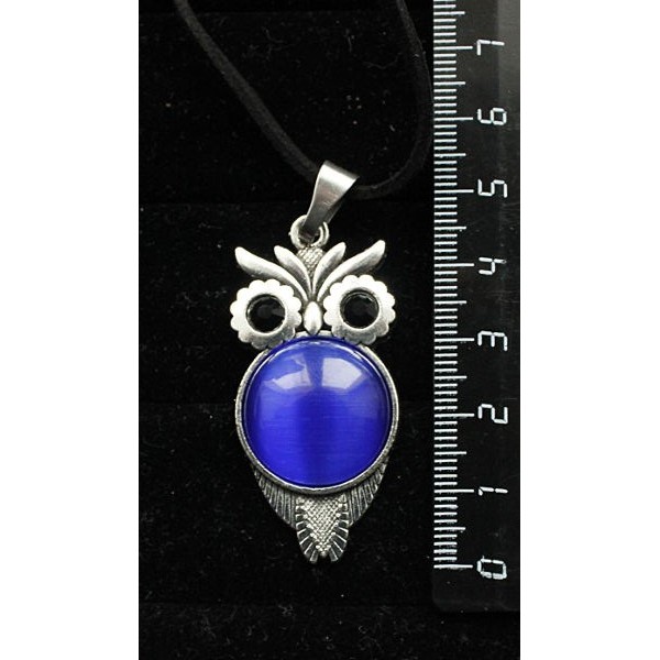 • Кулон из кошачьего глаза (синт.), цвет синий индиго, "сова", круг 20мм