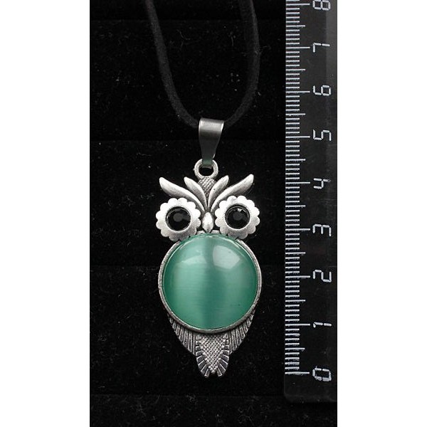 Кулон из кошачьего глаза (синт.), цвет зеленый мятный, "сова", круг 20мм