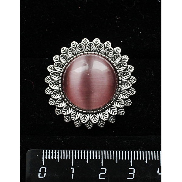 • Брошь из кошачьего глаза (синт.), цвет розово-сиреневый, "подсолнух", круг 20мм