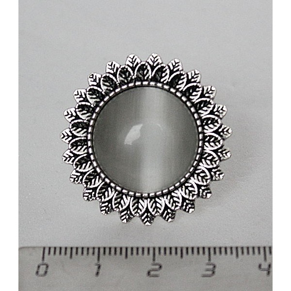 Кольцо с кошачьим глазом (синт.), цвет белый, круг 20мм, безразмерное