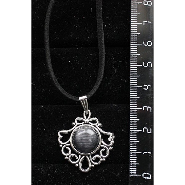 Кулон из кошачьего глаза (синт.), круг 12мм, оправа "балерина", цвет черный