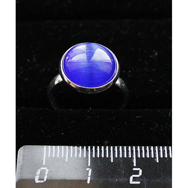 Кольцо с кошачьим глазом (синт.), круг 12мм, цвет синий индиго, безразмерное