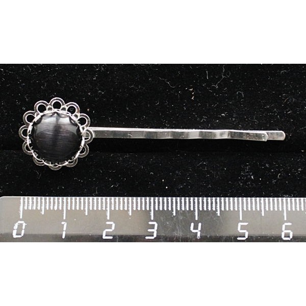 Заколка-шпилька из кошачьего глаза (синт.), цвет черный, круг 12мм, основа цвет бронза с узором