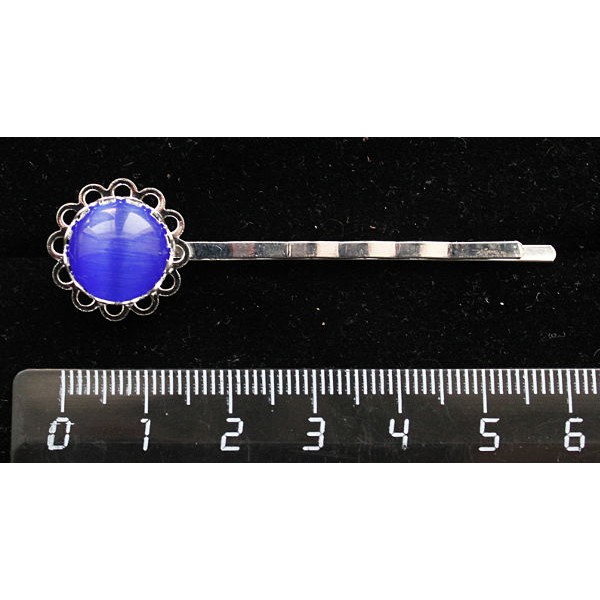 Заколка с кошачьим глазом (синт.), круг 12мм, цвет синий индиго, 6см, 5 камней