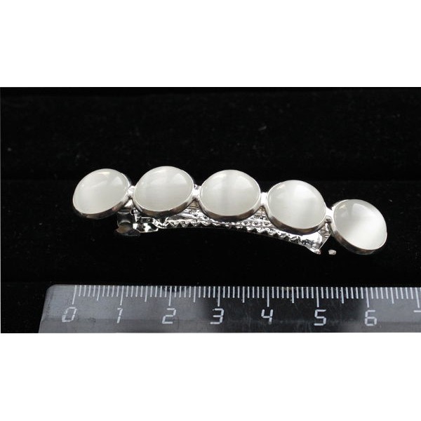Заколка с кошачьим глазом (синт.), круг 12мм, цвет белый, 6см, 5 камней