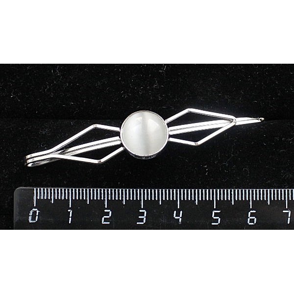 Заколка с кошачьим глазом (синт.), круг 12мм, цвет белый, 6см, 5 камней