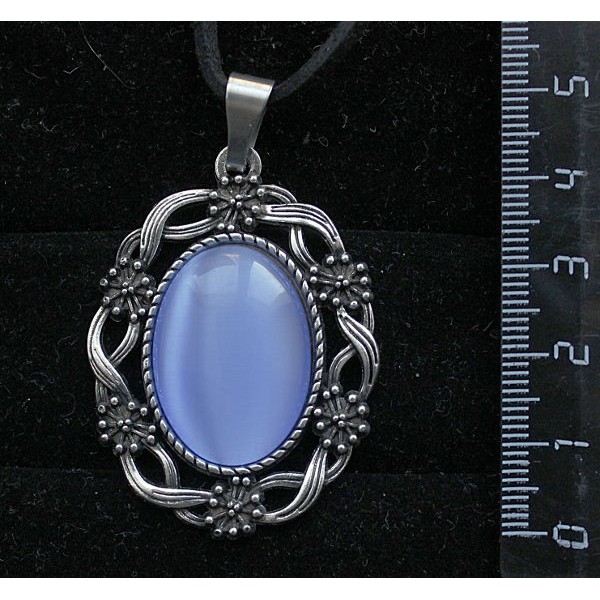 Кулон изкошачьего глаза (синт.), цвет синий лавандовый, овал 25х18мм, оправа "клумба"