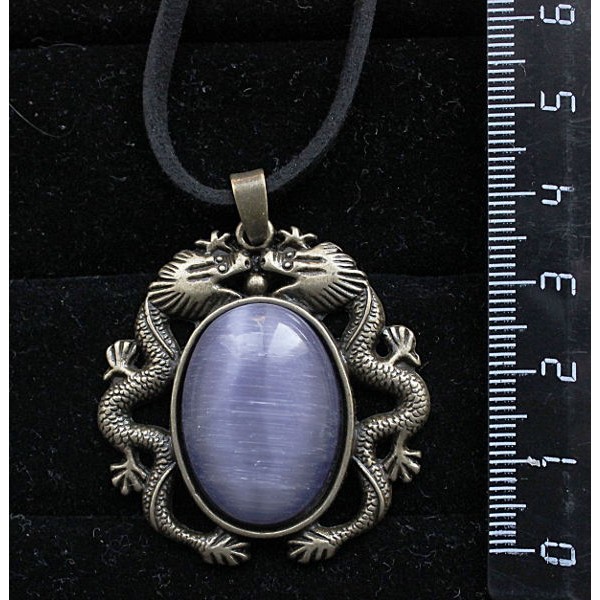 Кулон из кошачьего глаза (синт.), цвет фиолетовый, овал 25х18мм, оправа цвет бронза "2 дракона"