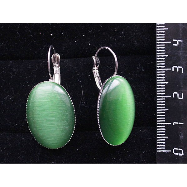 Серьги изкошачьего глаза (синт.), овал 25х18мм, цвет зеленый травяной, замок петелька