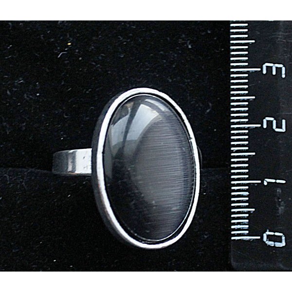 Кольцо с кошачьим глазом (синт.), овал 25х18мм, цвет черный, безразмерное (литая оправа)