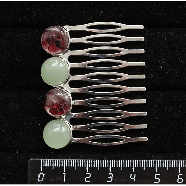 Заколка из граната (кабошон-мозаика) и авантюрина зеленого 6см, круг 12мм, 5 камней