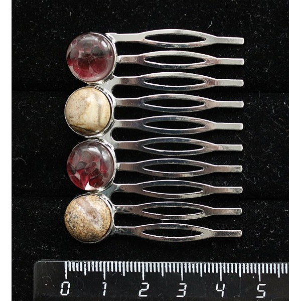 Заколка из граната (кабошон-мозаика) и яшмы песочной 6см, круг 12мм, 5 камней