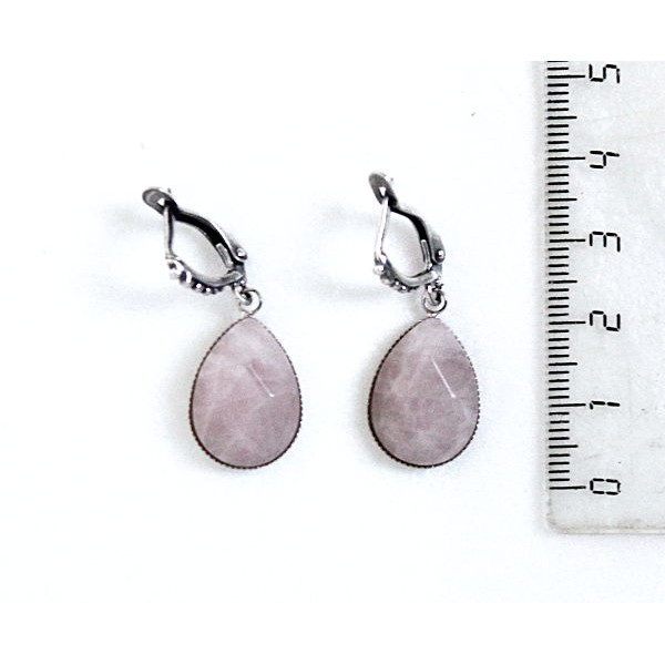 Серьги из кварца розового, капелька 18х13мм, огранка, замок петелька
