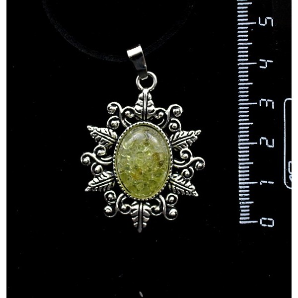 • Кулон из хризолита (кабошон-мозаика), овал, 18х13мм, оправа "папоротник"