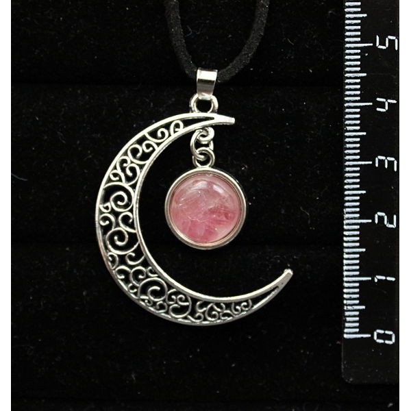 • Кулон из турмалина розового (кабошон-мозаика), "луна", круг 12мм