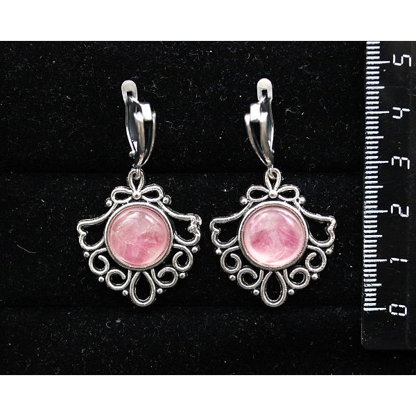 Серьги из розового кварца, круг 12мм, оправа "балерина"