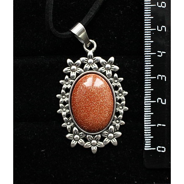 Кулон из авантюрина красного (синт.), овал 25х18мм, оправа "клумба"