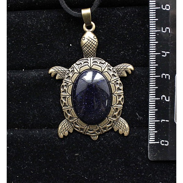 • Кулон из авантюрина синего (синт.), овал 25х18мм, "черепаха" оправа цвет бронза
