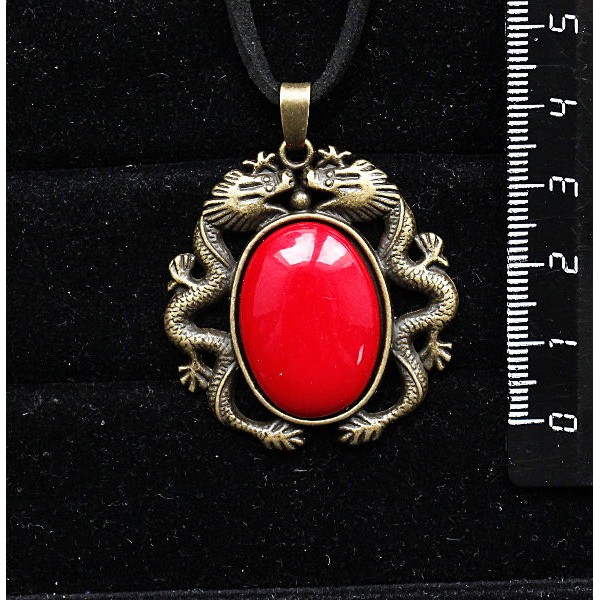 Кулон c кабошоном из пластика "два цветка", цвет красный, овал 25х18мм, оправа цвет бронза "2 дракона"