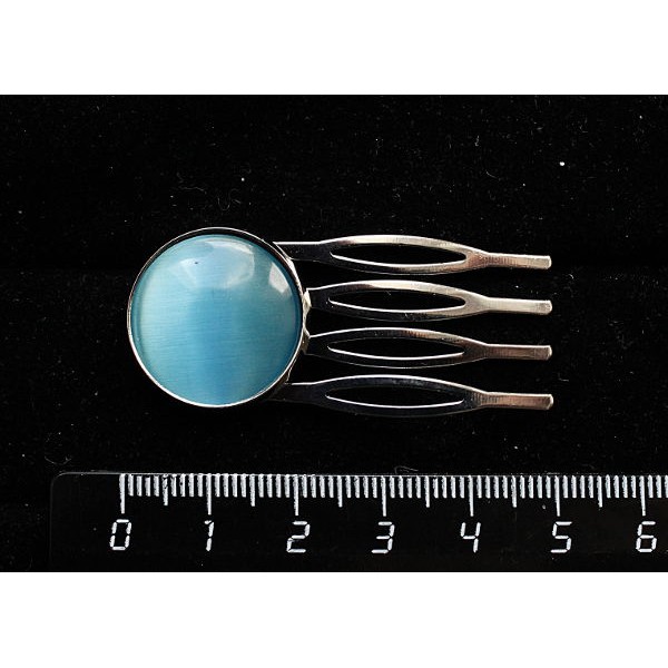 Заколка-крокодил с кошачьим глазом (синт.) темно-голубым, круг 20мм