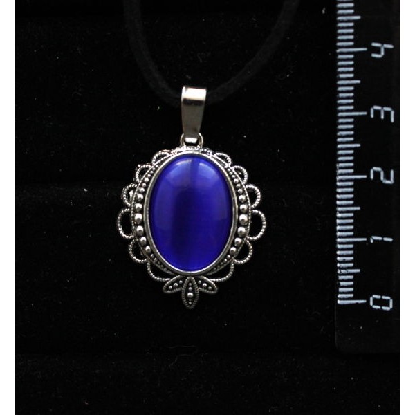 Кулон из кошачьего глаза (синт.) синего индиго, овал, 18х13мм, оправа "трилистник"