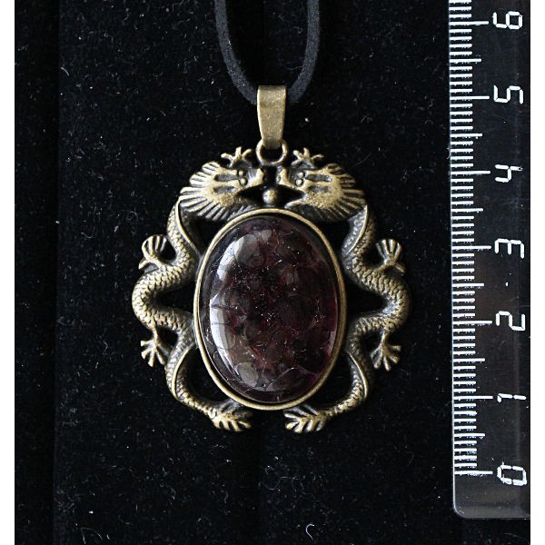 • Кулон из граната (кабошон-мозаика), овал 25х18мм, оправа цвет бронза "2 дракона"
