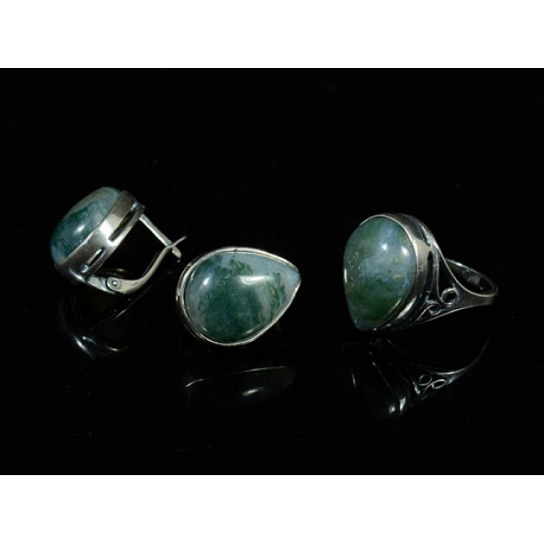 sg01-00408, sg01, sg01-, 01-, 01-00408, комплект:_кольцо_и_серьги_из_агата, агат_моховой, серьги_агат_моховой, капелька