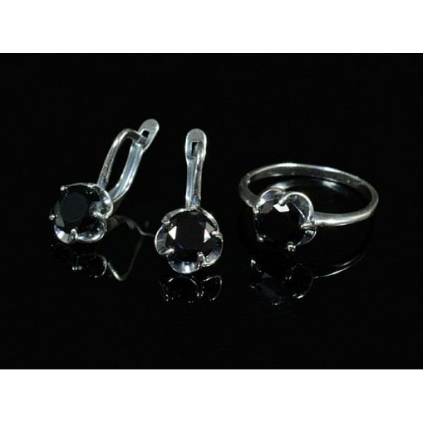 sg56-00128, sg56, sg56-, 56-, 56-00128, комплект:_кольцо_и_серьги_из_циркона, циркон_черный, серьги_циркон_черный, круг