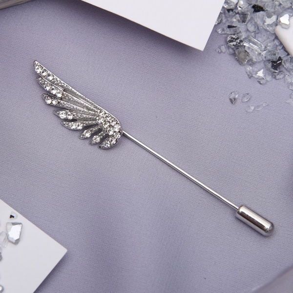 Булавка "Крыло", 7,7 см, цвет белый, цвет серебристый