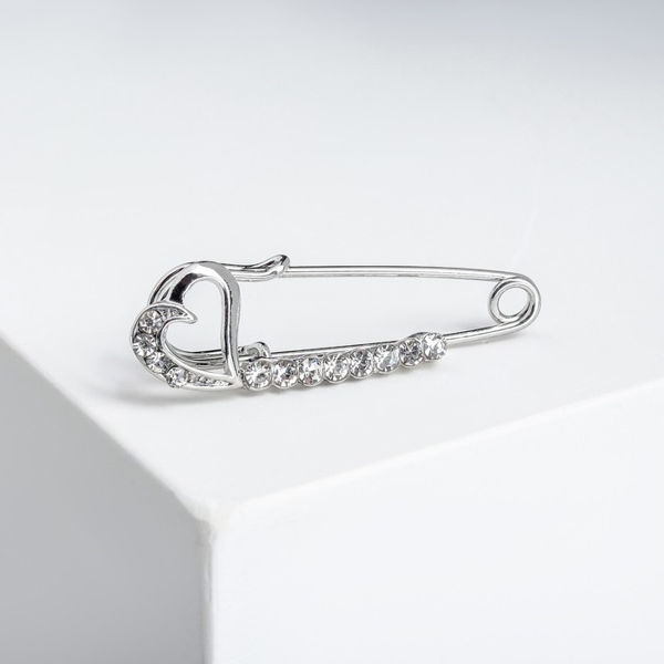 Булавка малая "Сердце" 4 см, цвет белый, цвет серебристый