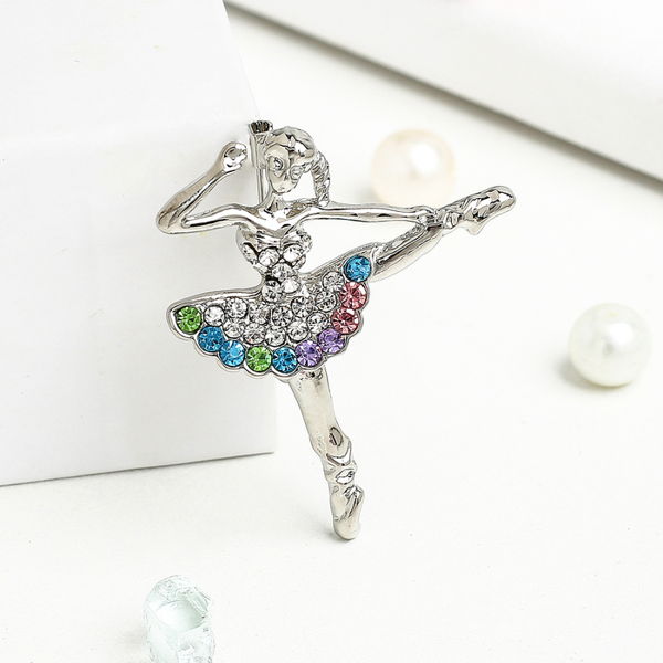 Брошь спортивная "Балерина" аллонже, цвет радужный, цвет серебристый