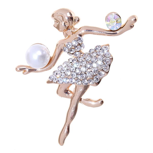 Брошь спортивная "Балерина с мячами", цвет белый, цвет золотистый