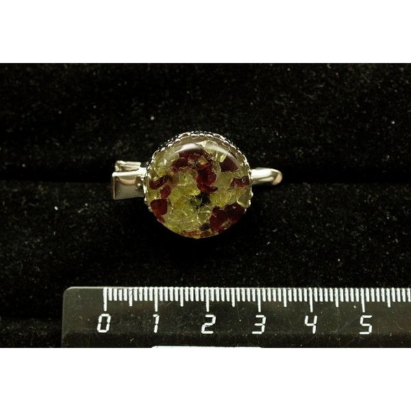 Кольцо из хризолита и граната (кабошон-мозаика) "2..